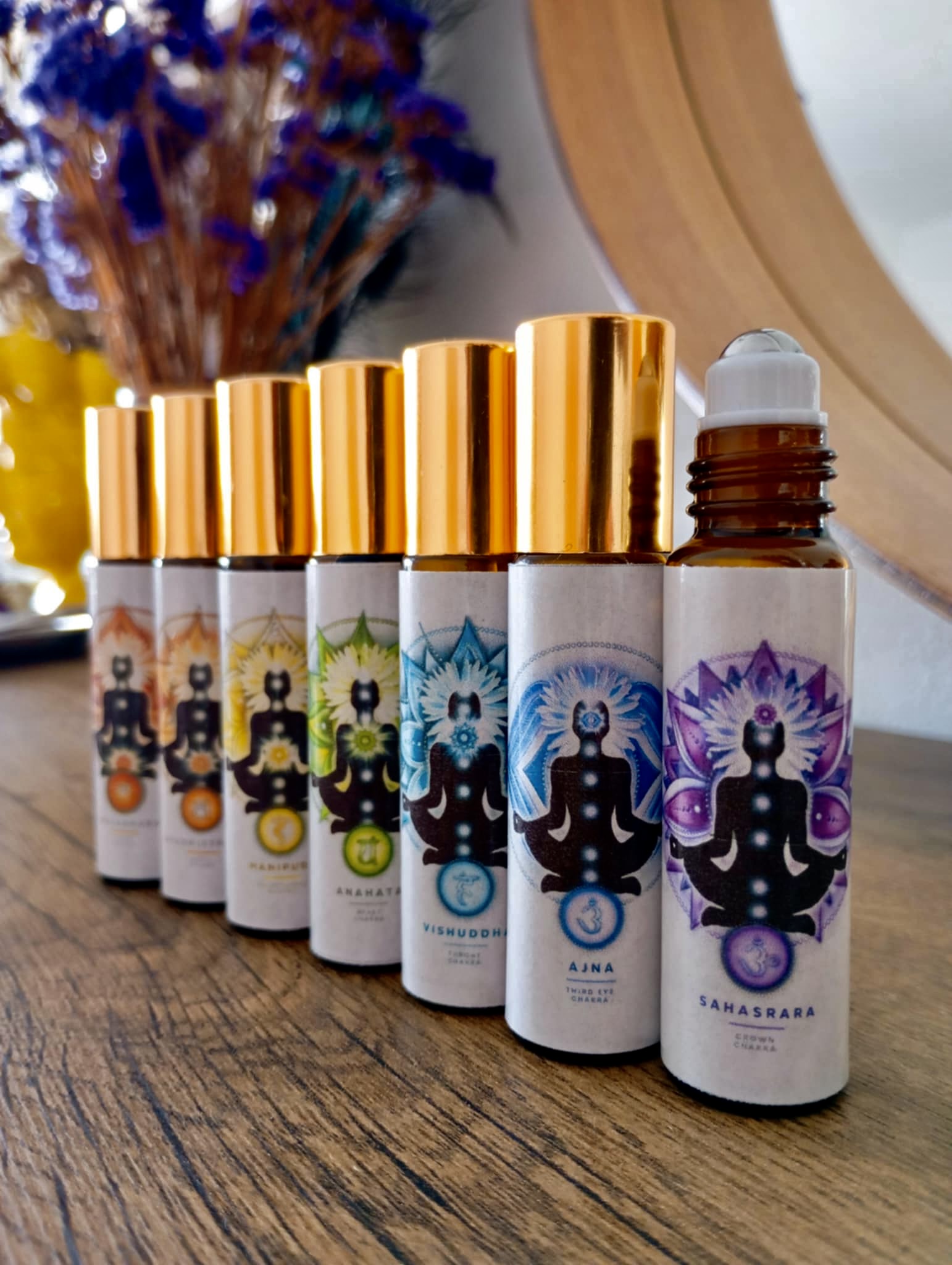 Στο σετ περιλαμβάνονται 7 roll-on των 10ml, με βάση έλαιο jojoba και προσεκτικά επιλεγμένα αιθέρια έλαια για κάθε ενεργειακό κέντρο: